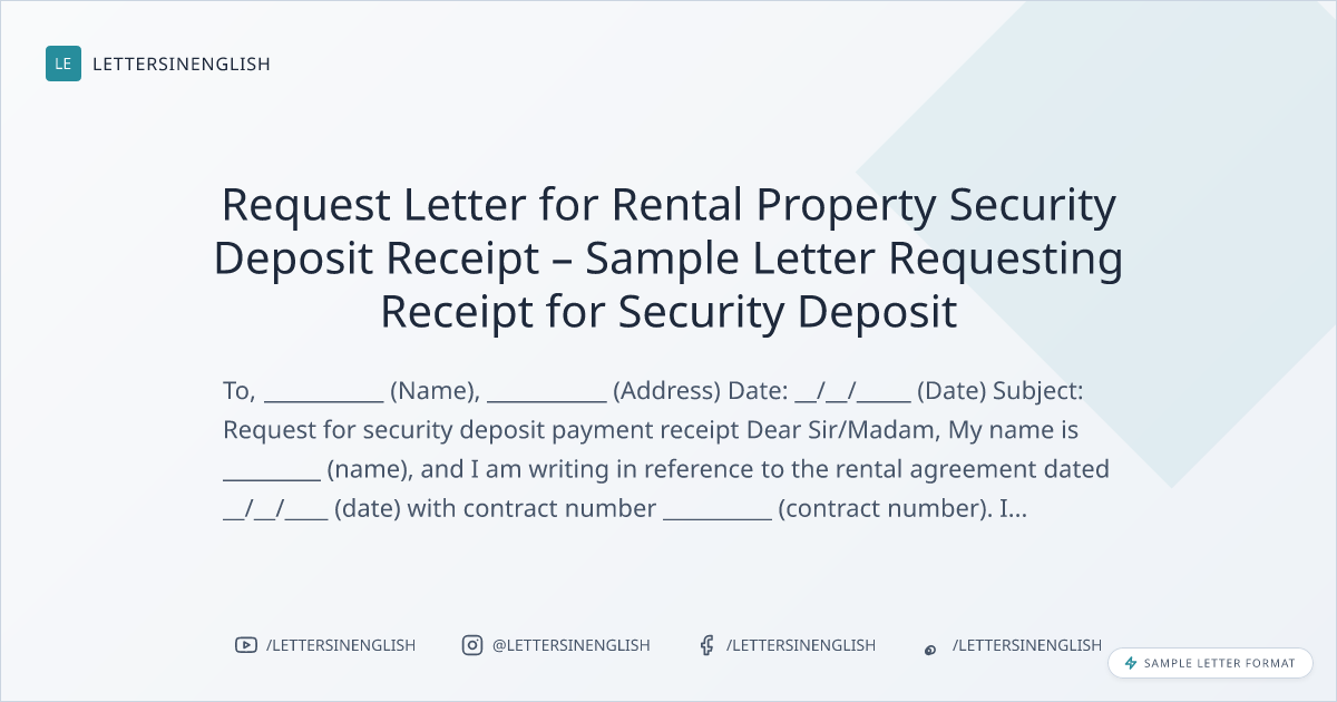 Request Letter for Rental Property Security Deposit Receipt – Sample Letter Requesting Receipt for Security Deposit