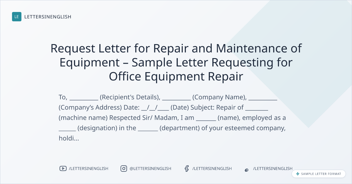 Request Letter for Repair and Maintenance of Equipment – Sample Letter Requesting for Office Equipment Repair