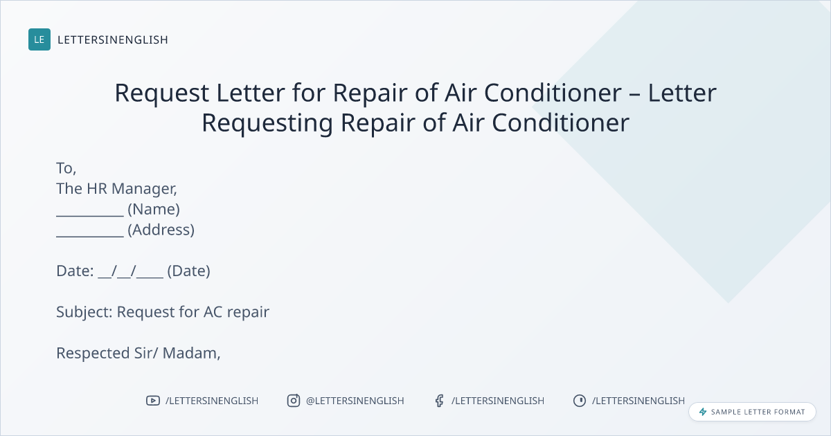 Request Letter for Repair of Air Conditioner – Letter Requesting Repair of Air Conditioner