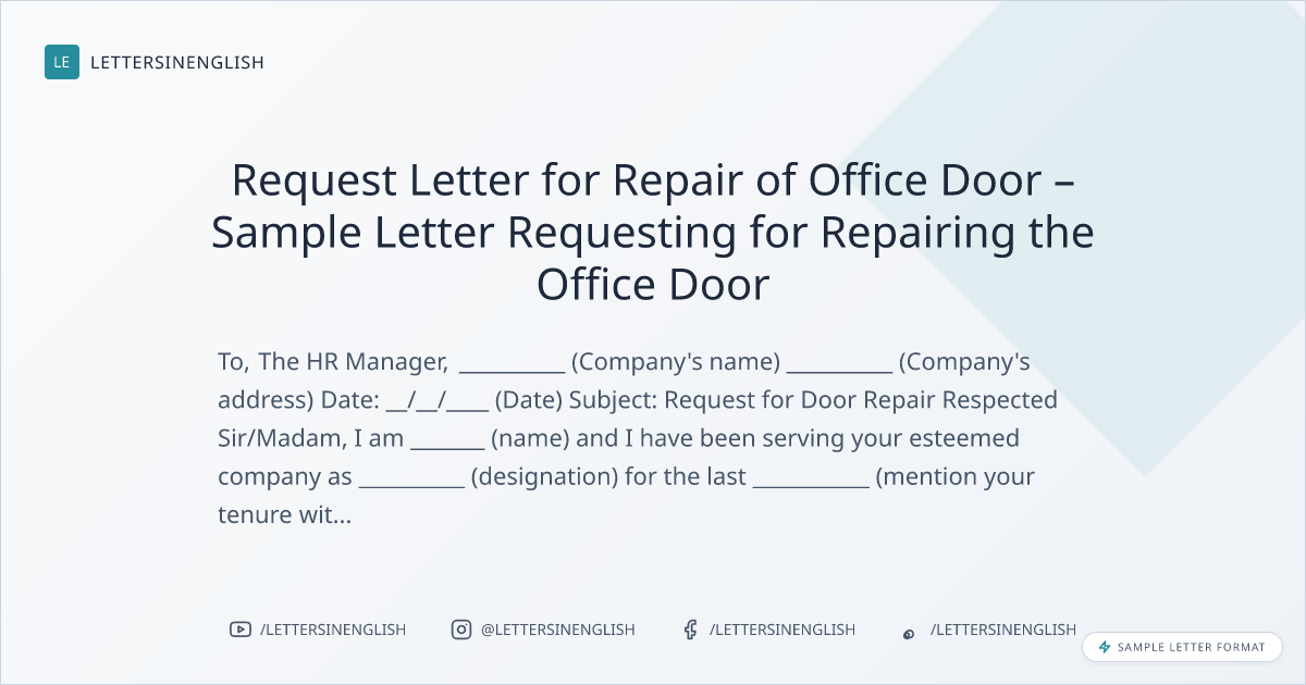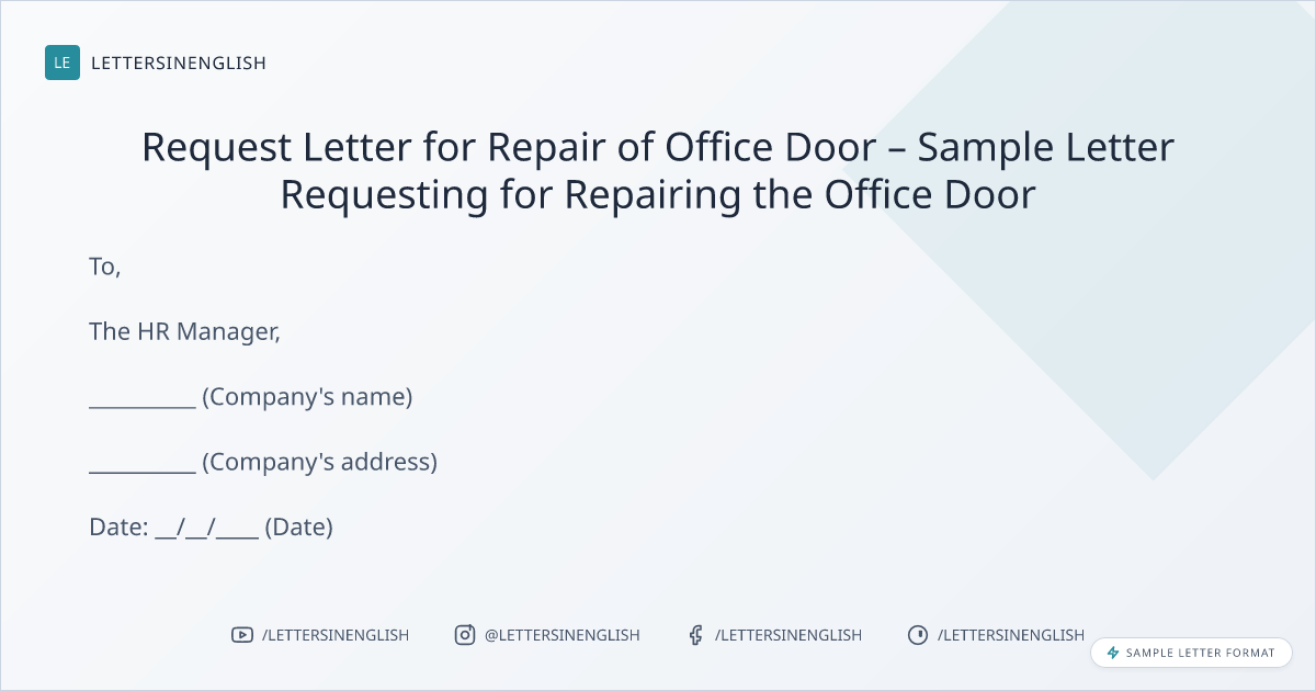 Request Letter for Repair of Office Door – Sample Letter Requesting for Repairing the Office Door