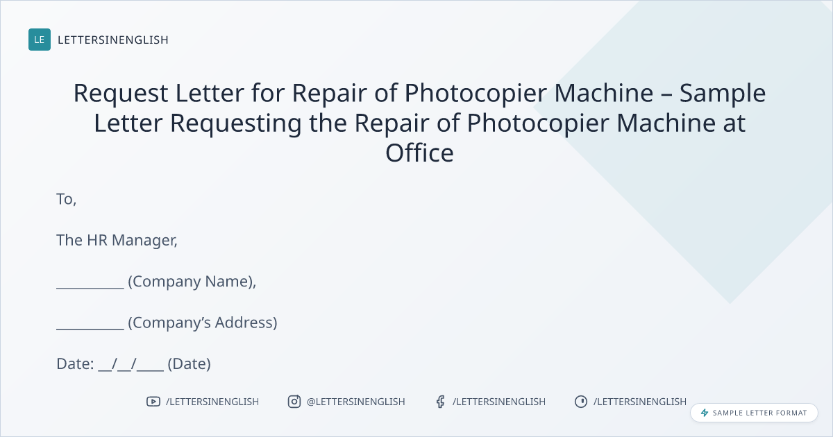 Request Letter for Repair of Photocopier Machine – Sample Letter Requesting the Repair of Photocopier Machine at Office
