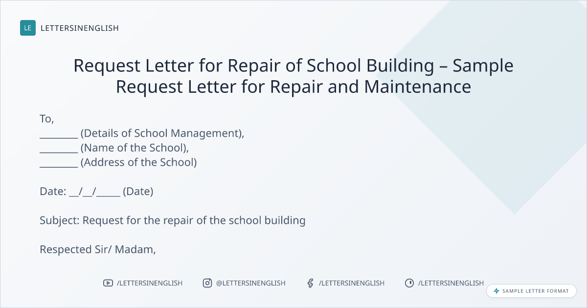 Request Letter for Repair of School Building – Sample Request Letter for Repair and Maintenance