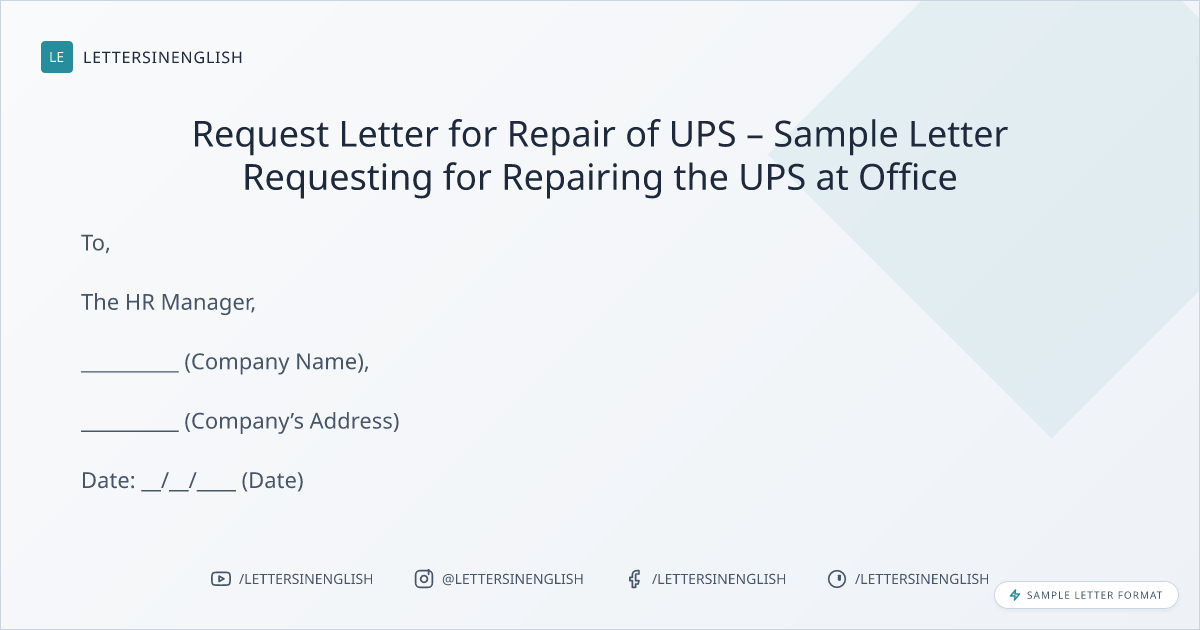 Request Letter for Repair of UPS – Sample Letter Requesting for Repairing the UPS at Office