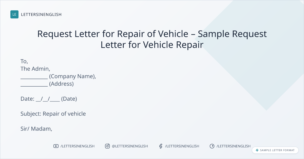 Request Letter for Repair of Vehicle – Sample Request Letter for Vehicle Repair