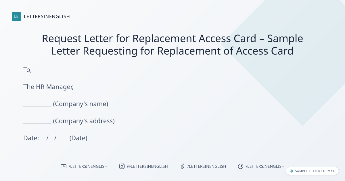 Request Letter for Replacement Access Card – Sample Letter Requesting for Replacement of Access Card