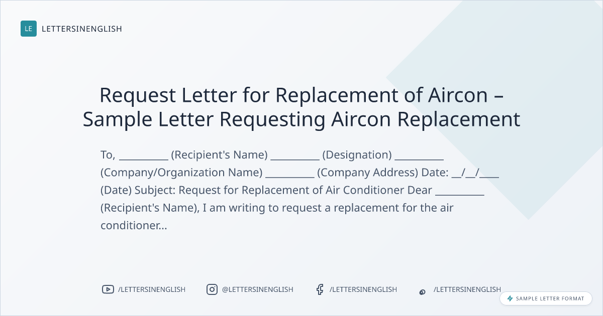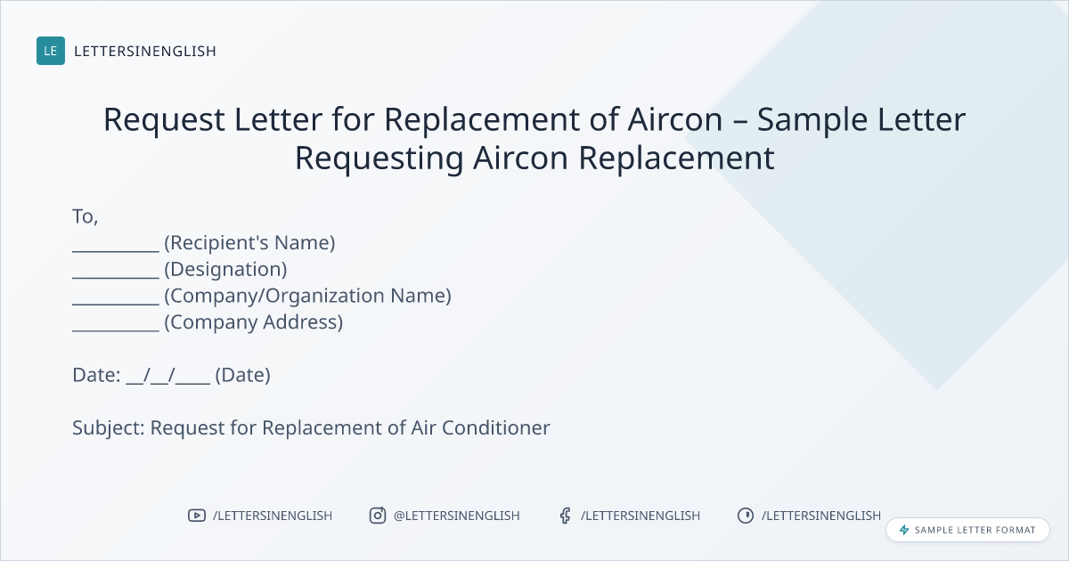 Request Letter for Replacement of Aircon – Sample Letter Requesting Aircon Replacement