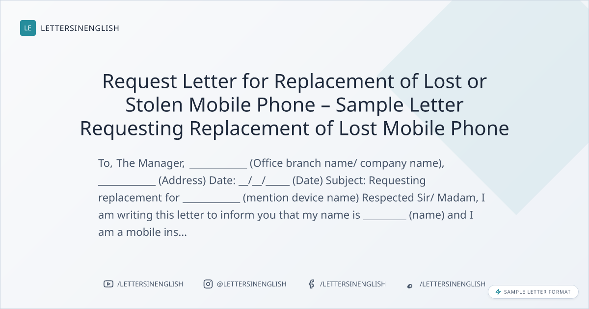 Request Letter for Replacement of Lost or Stolen Mobile Phone – Sample Letter Requesting Replacement of Lost Mobile Phone