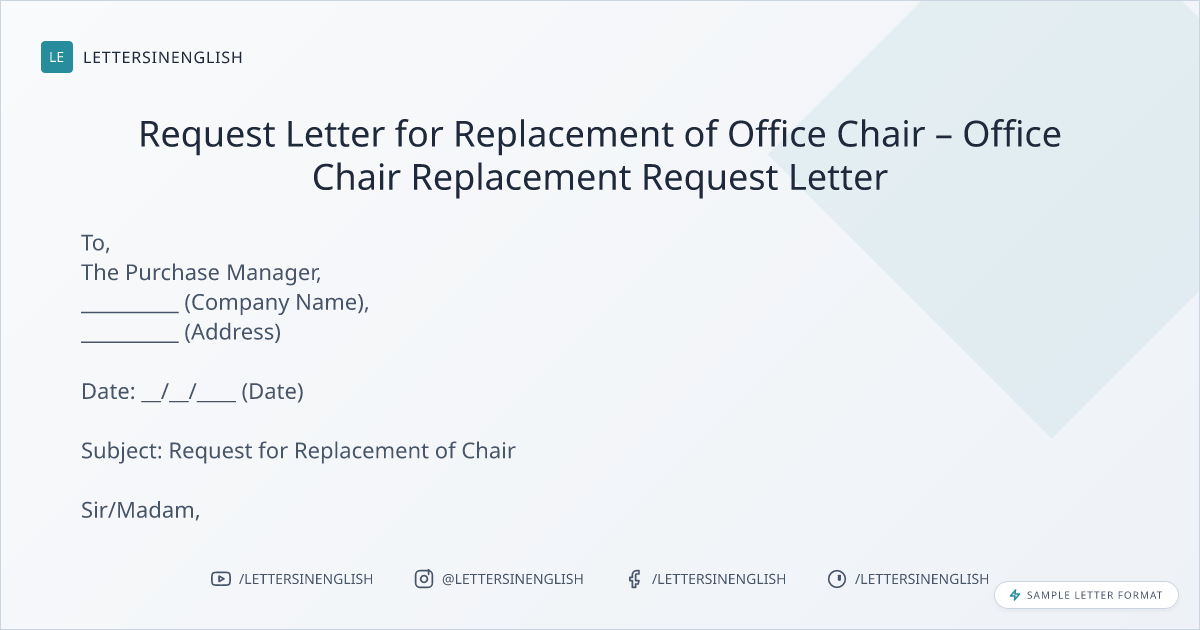 Sample Request Letter for Replacement of Chair