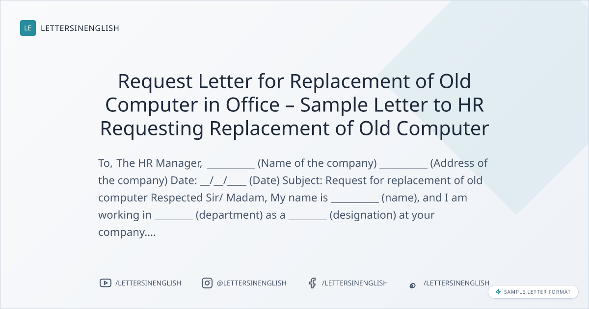 Request Letter for Replacement of Old Computer in Office – Sample Letter to HR Requesting Replacement of Old Computer