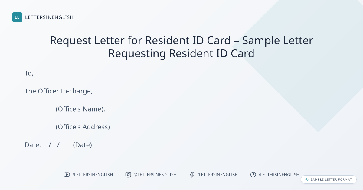 Request Letter for Resident ID Card – Sample Letter Requesting Resident ID Card