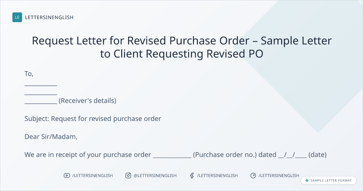 Request Letter for Revised Purchase Order – Sample Letter to Client Requesting Revised PO