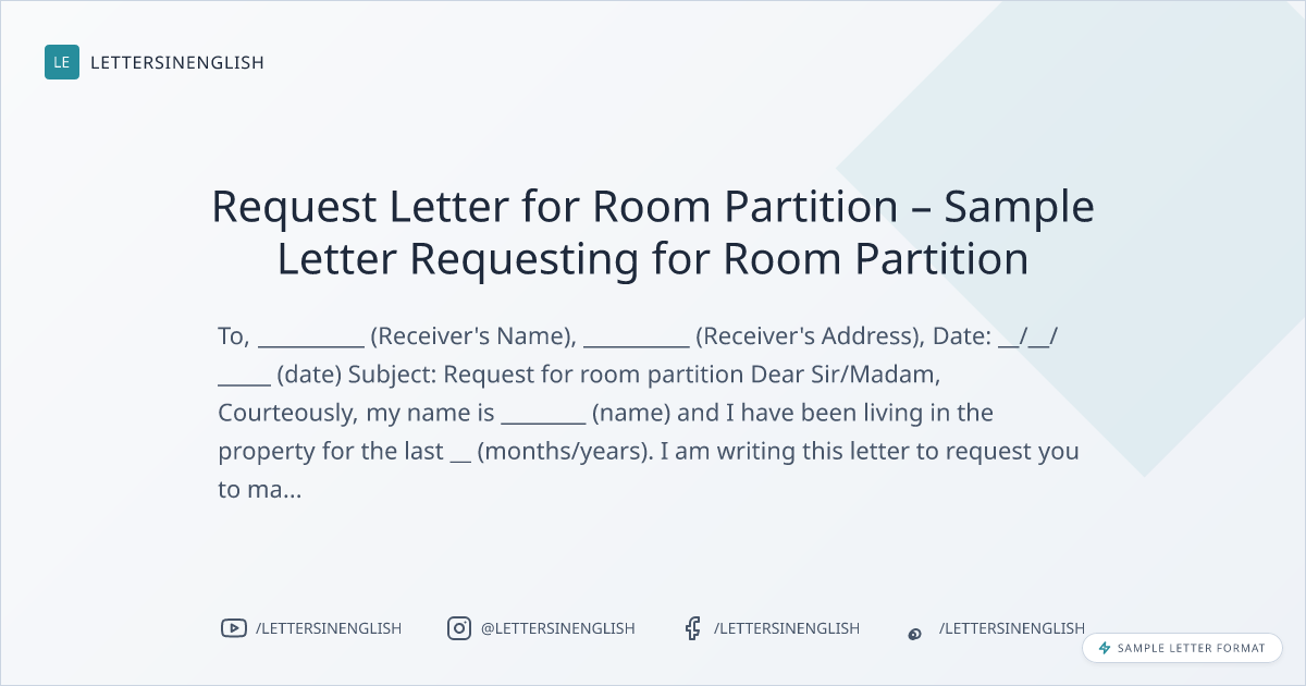 Request Letter for Room Partition – Sample Letter Requesting for Room Partition