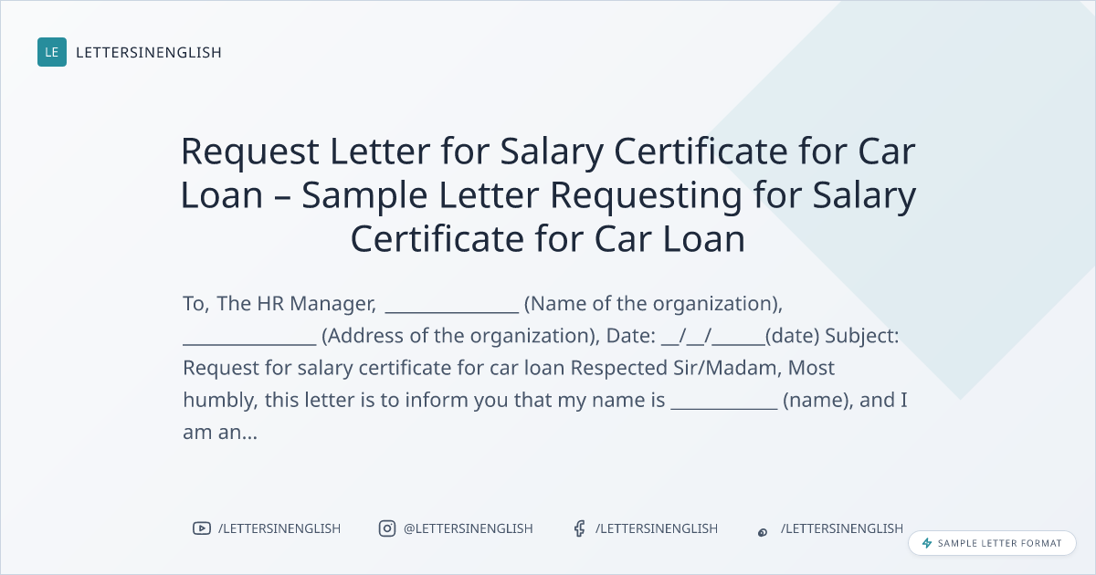 Request Letter for Salary Certificate for Car Loan – Sample Letter Requesting for Salary Certificate for Car Loan