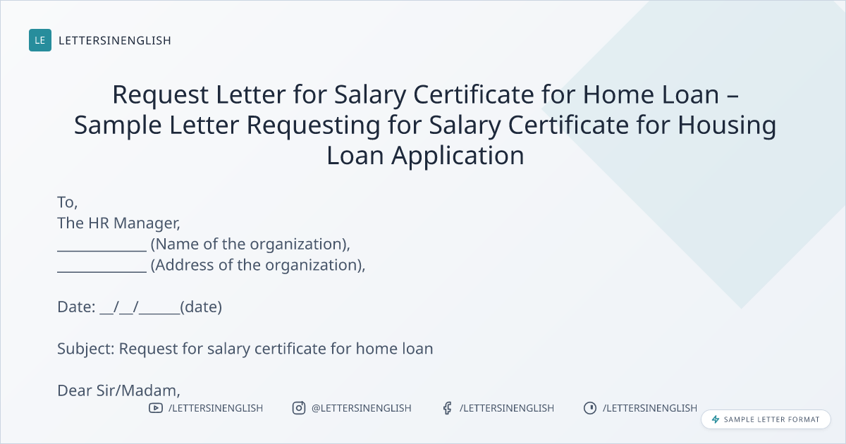 Request Letter for Salary Certificate for Home Loan – Sample Letter Requesting for Salary Certificate for Housing Loan Application