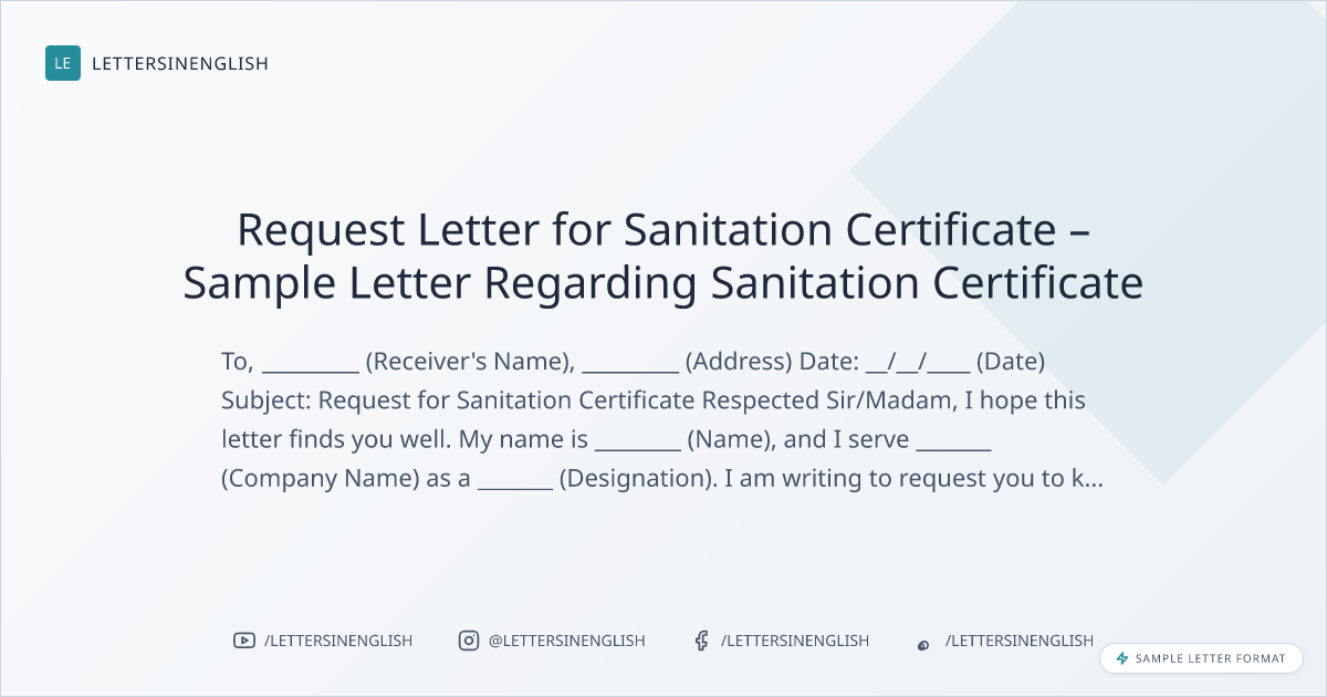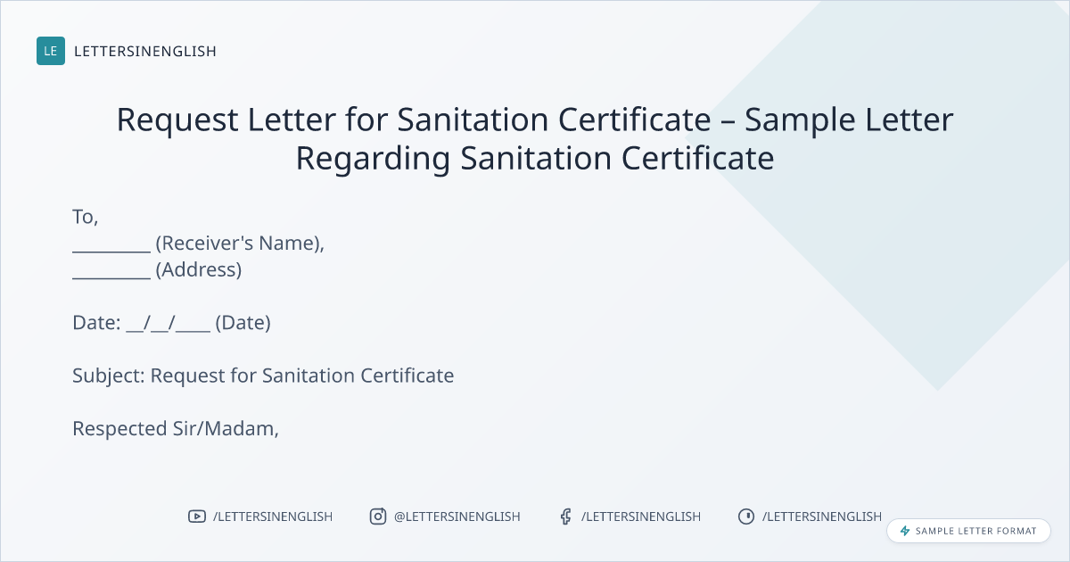 Request Letter for Sanitation Certificate – Sample Letter Regarding Sanitation Certificate