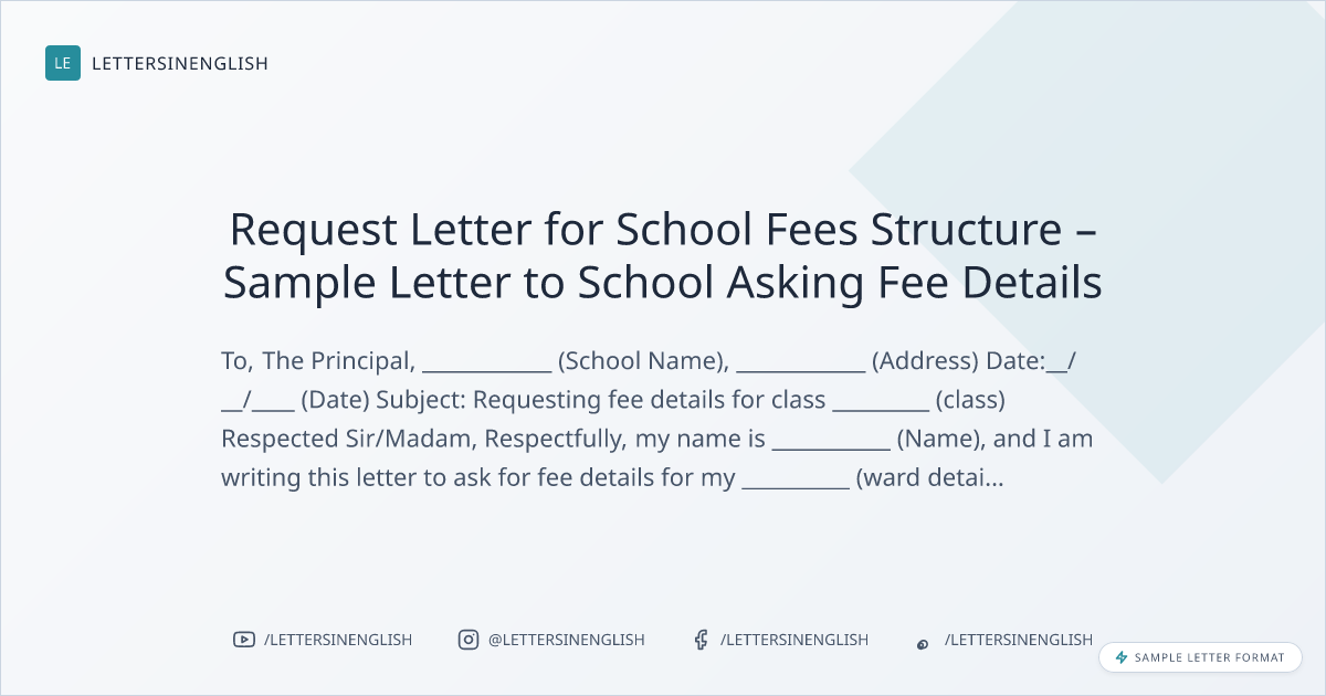 Request Letter for School Fees Structure – Sample Letter to School Asking Fee Details