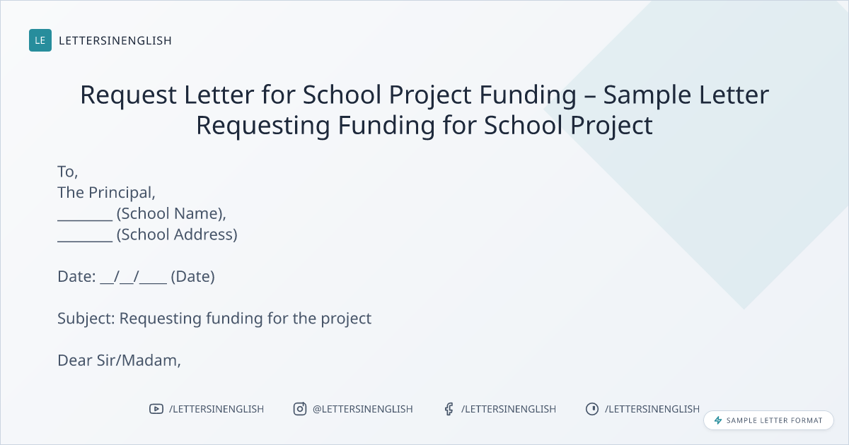 Request Letter for School Project Funding – Sample Letter Requesting Funding for School Project