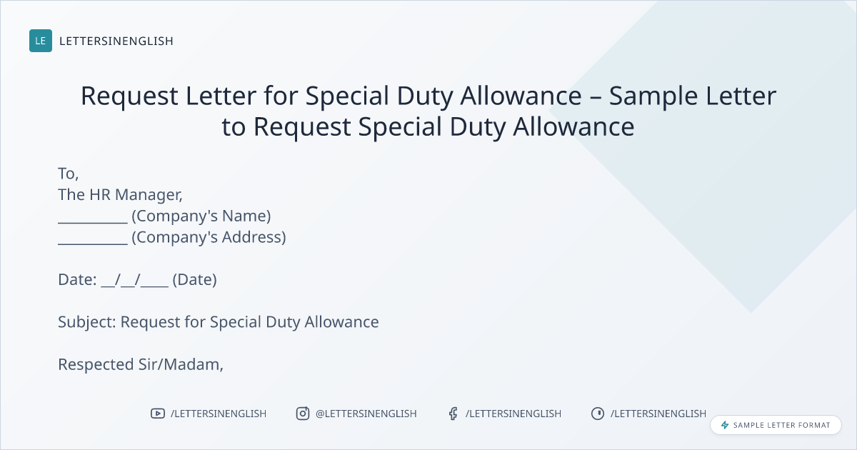 Request Letter for Special Duty Allowance – Sample Letter to Request Special Duty Allowance