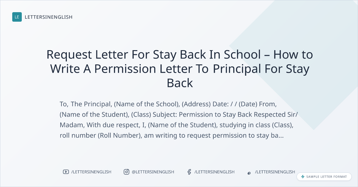 Request Letter For Stay Back In School – How to Write A Permission Letter To Principal For Stay Back