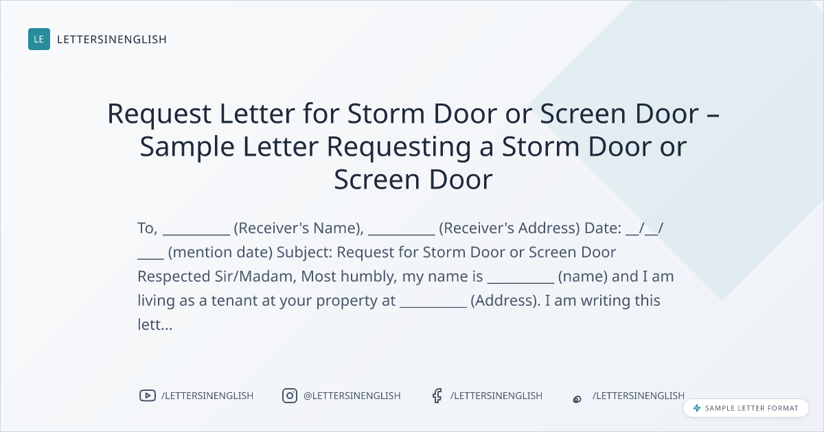 Request Letter for Storm Door or Screen Door – Sample Letter Requesting a Storm Door or Screen Door