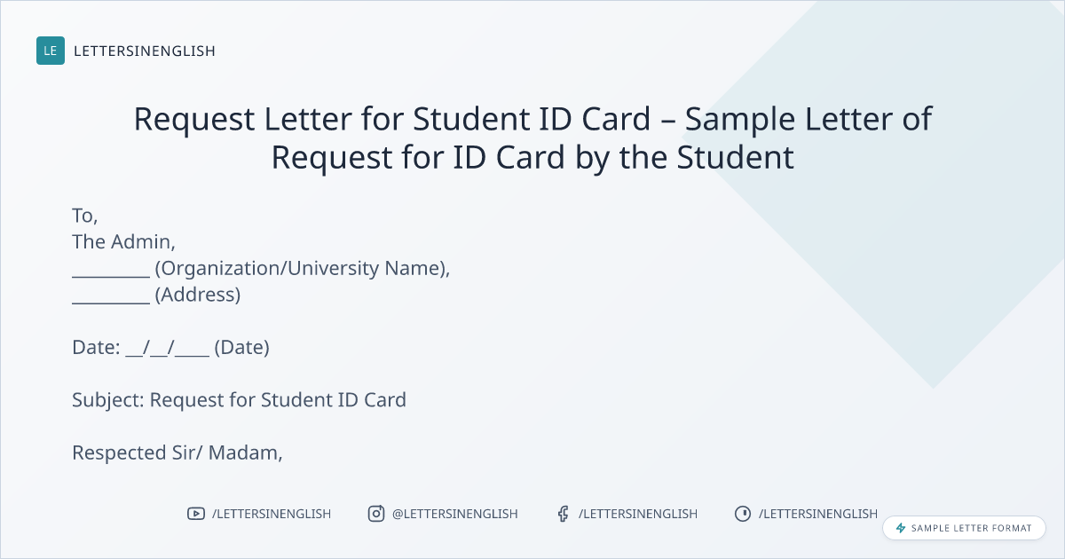 Request Letter for Student ID Card – Sample Letter of Request for ID Card by the Student