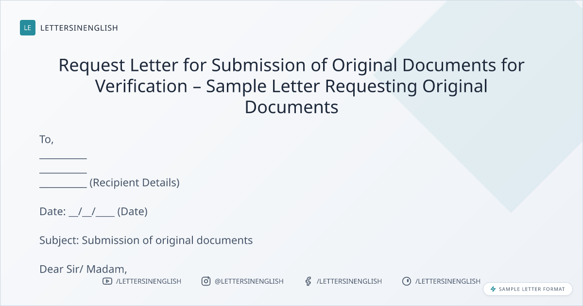 Request Letter for Submission of Original Documents for Verification – Sample Letter Requesting Original Documents