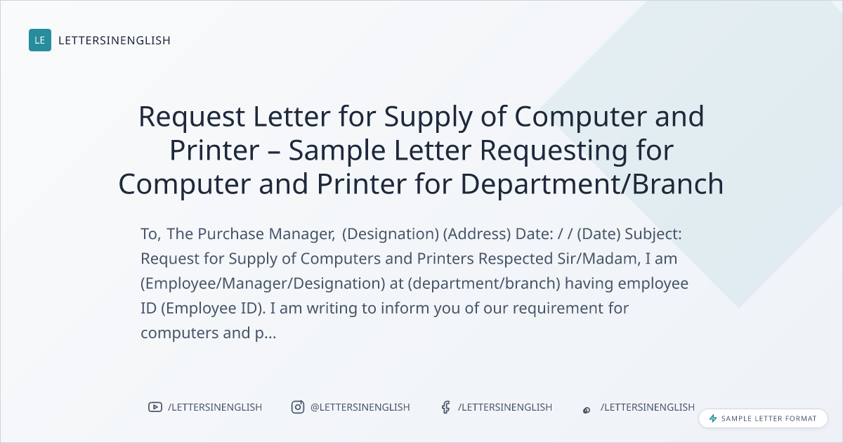 Request Letter for Supply of Computer and Printer – Sample Letter Requesting for Computer and Printer for Department/Branch