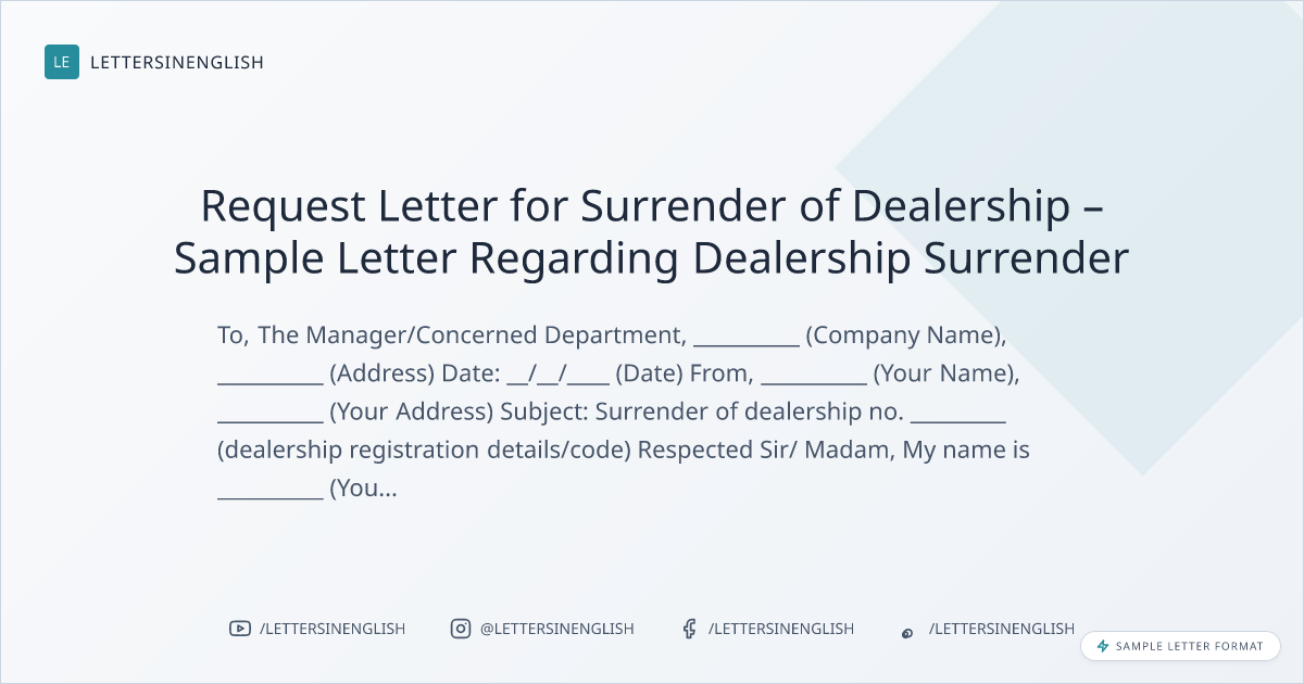 Request Letter for Surrender of Dealership – Sample Letter Regarding Dealership Surrender