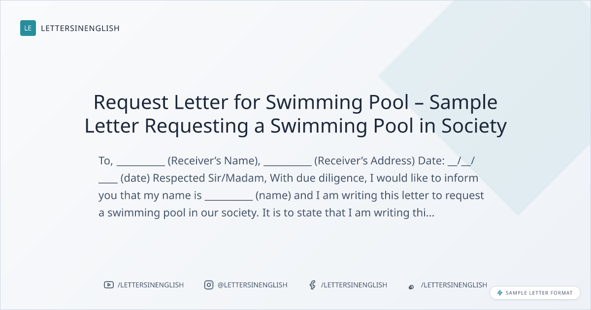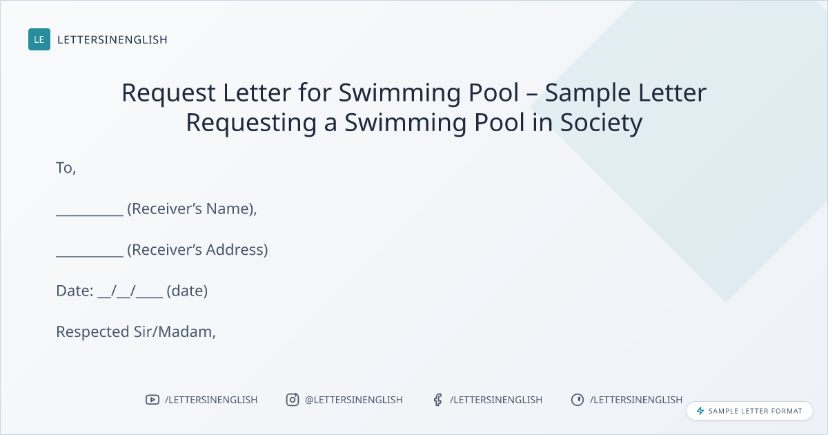 Request Letter for Swimming Pool – Sample Letter Requesting a Swimming Pool in Society