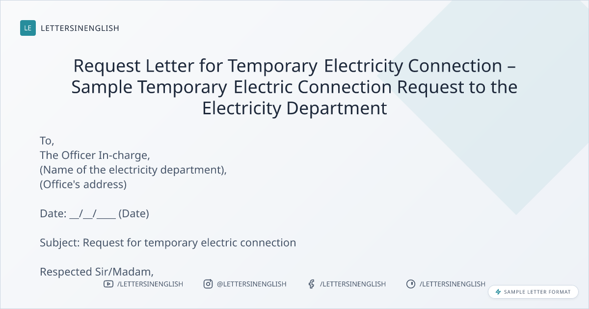 Sample Request Letter for Temporary Electricity Connection