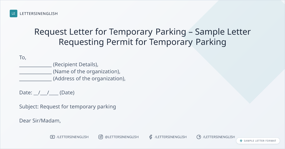 Request Letter for Temporary Parking – Sample Letter Requesting Permit for Temporary Parking