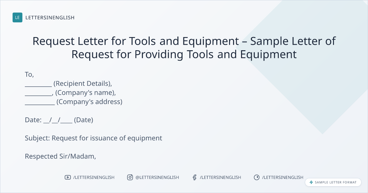 Request Letter for Tools and Equipment – Sample Letter of Request for Providing Tools and Equipment