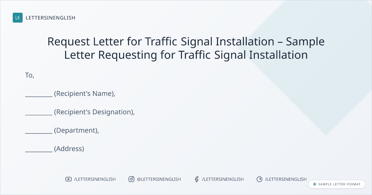 Request Letter for Traffic Signal Installation – Sample Letter Requesting for Traffic Signal Installation