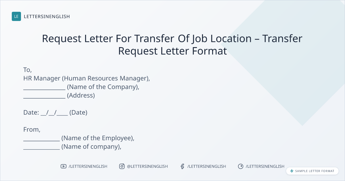 Request Letter For Transfer Of Job Location – Transfer Request Letter Format