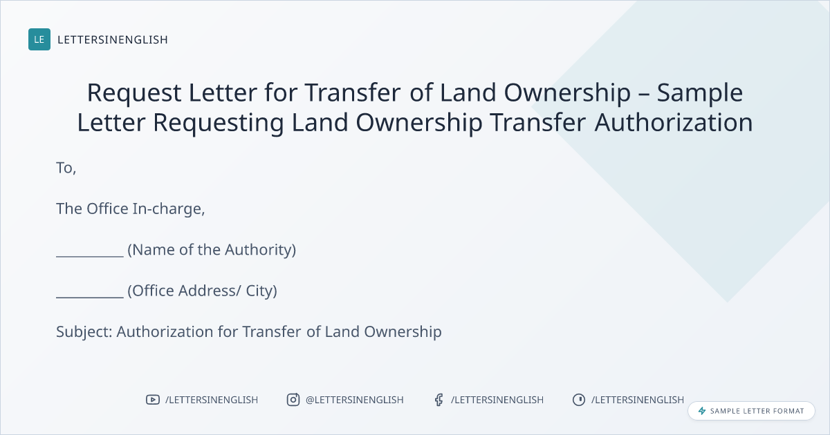 Request Letter for Transfer of Land Ownership – Sample Letter Requesting Land Ownership Transfer Authorization