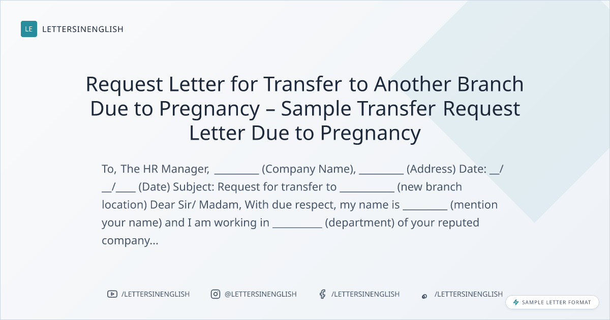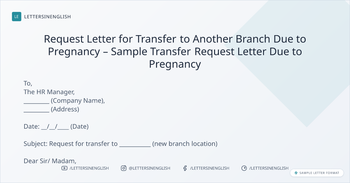 Request Letter for Transfer to Another Branch Due to Pregnancy – Sample Transfer Request Letter Due to Pregnancy