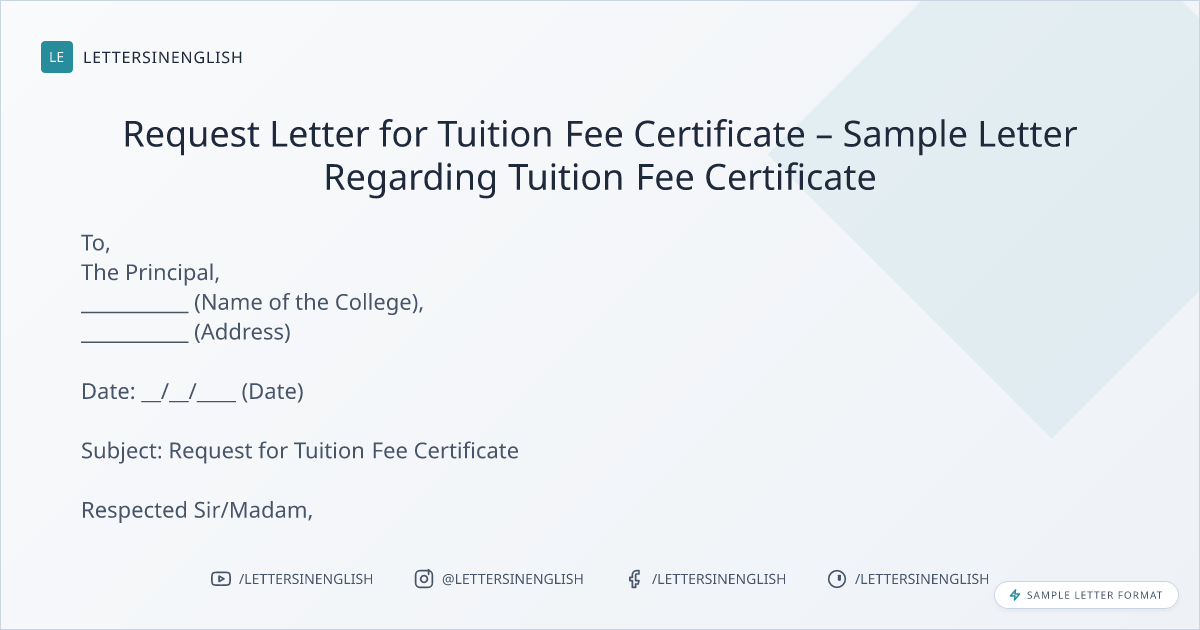 Request Letter for Tuition Fee Certificate – Sample Letter Regarding Tuition Fee Certificate