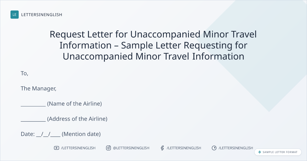 Request Letter for Unaccompanied Minor Travel Information – Sample Letter Requesting for Unaccompanied Minor Travel Information