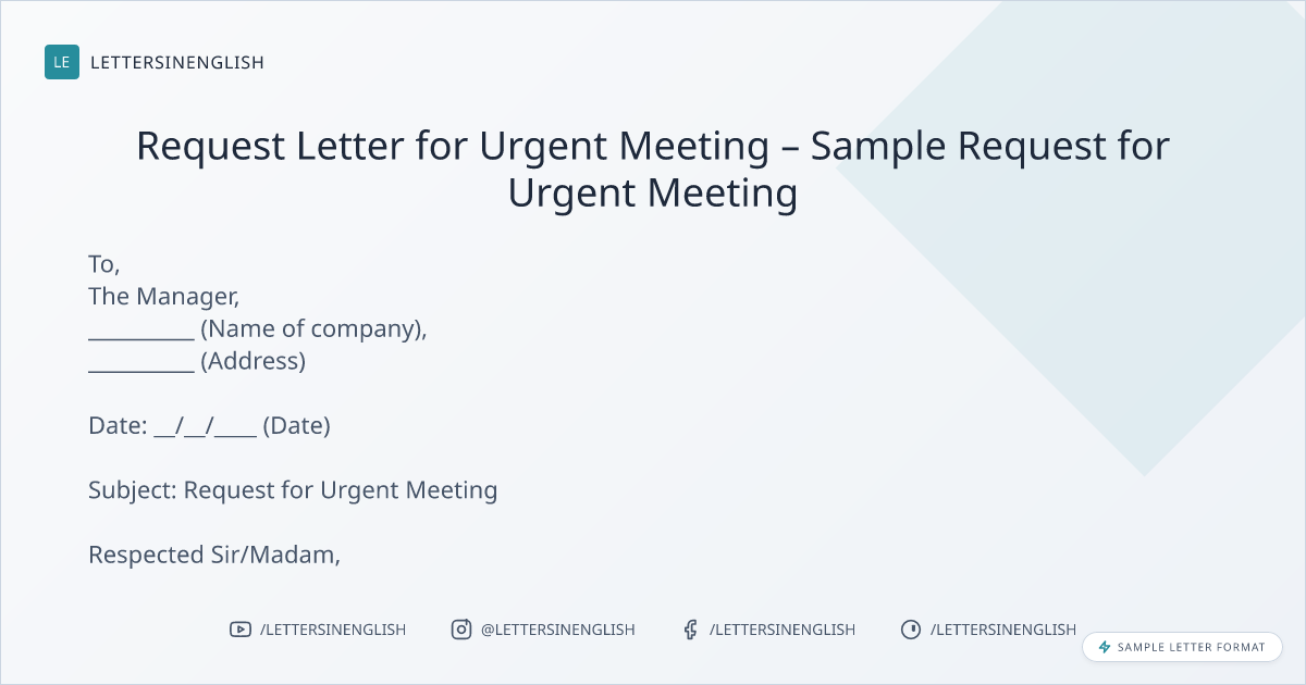 Request Letter for Urgent Meeting – Sample Request for Urgent Meeting