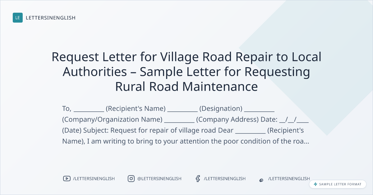 Request Letter for Village Road Repair to Local Authorities – Sample Letter for Requesting Rural Road Maintenance