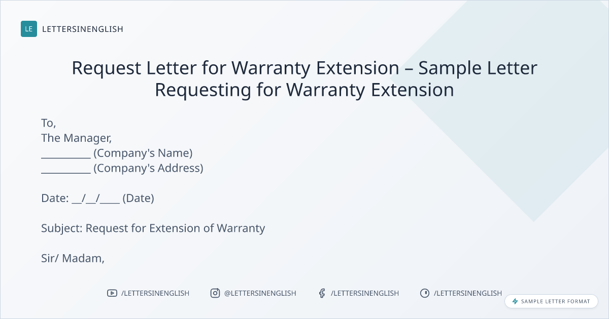 Request Letter for Warranty Extension – Sample Letter Requesting for Warranty Extension