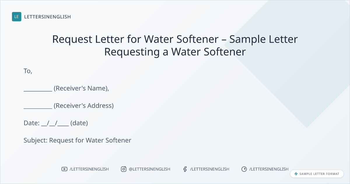 Request Letter for Water Softener – Sample Letter Requesting a Water Softener
