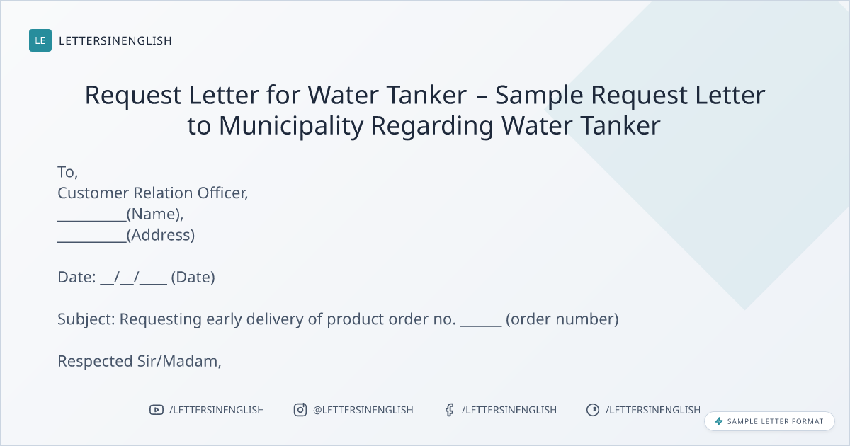 Request Letter for Water Tanker – Sample Request Letter to Municipality Regarding Water Tanker