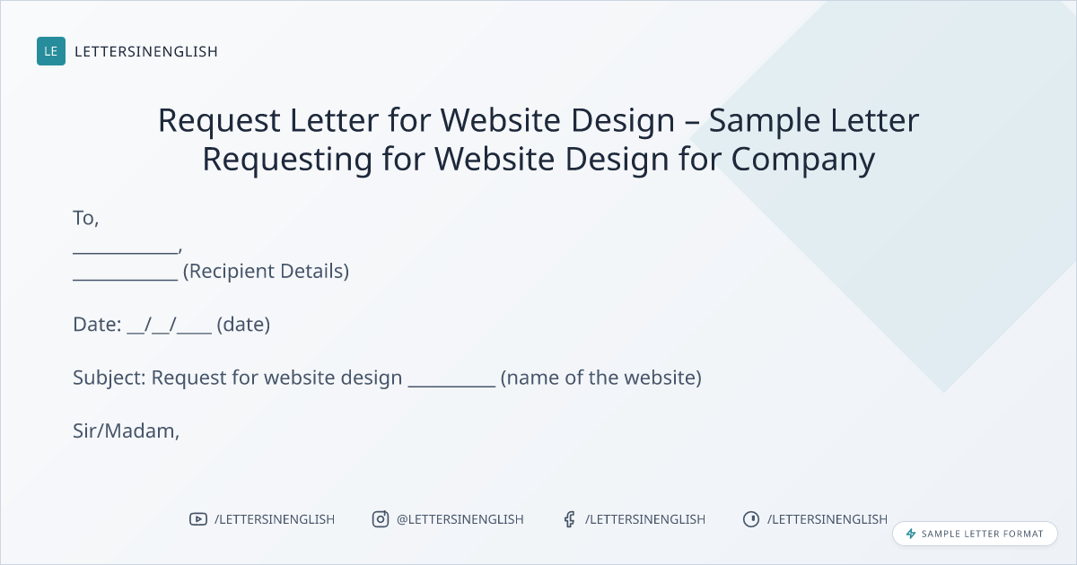 On behalf of __________ (company name), I, ________ (name and designation) write this letter to request you to provide us with a website design for __________ (website name).