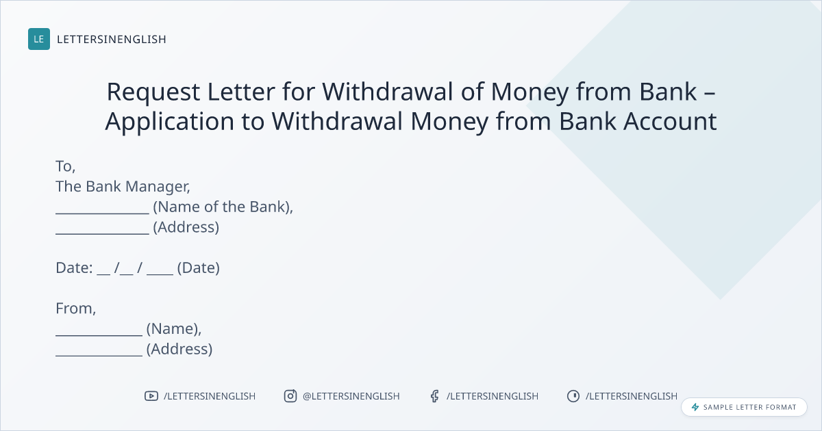 Request Letter for Withdrawal of Money from Bank – Application to Withdrawal Money from Bank Account