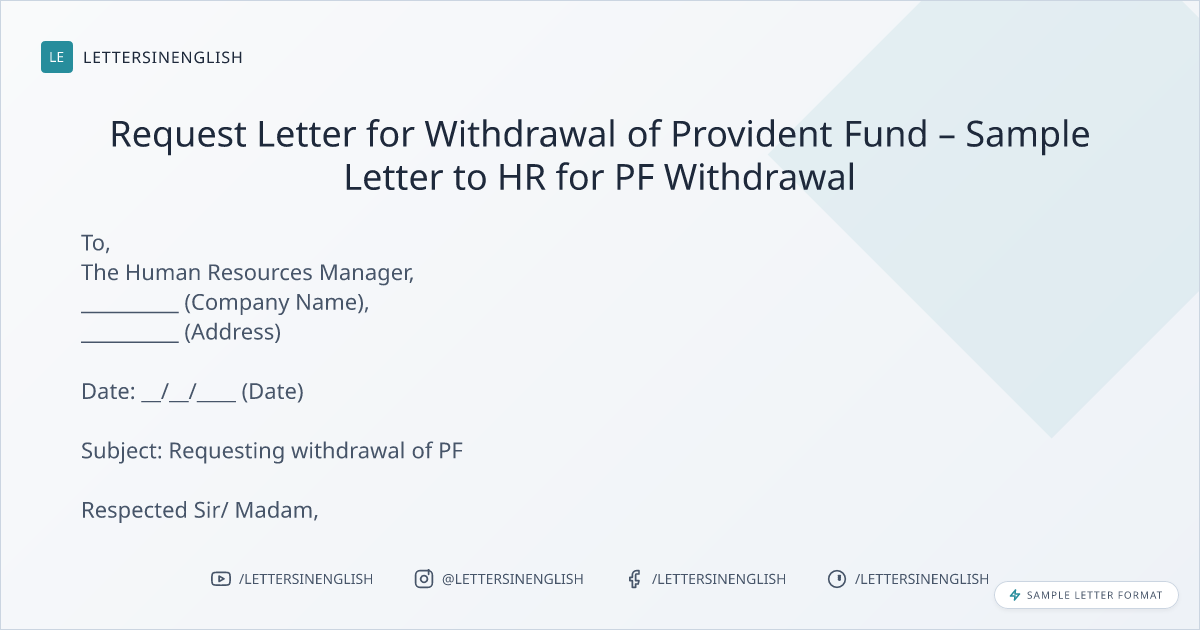 Request Letter for Withdrawal of Provident Fund – Sample Letter to HR for PF Withdrawal