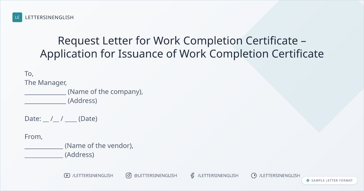 Request Letter for Work Completion Certificate - Application for Issuance of Work Completion Certificate
