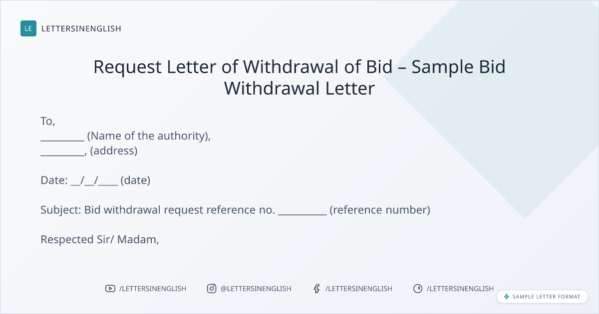 Request Letter of Withdrawal of Bid – Sample Bid Withdrawal Letter