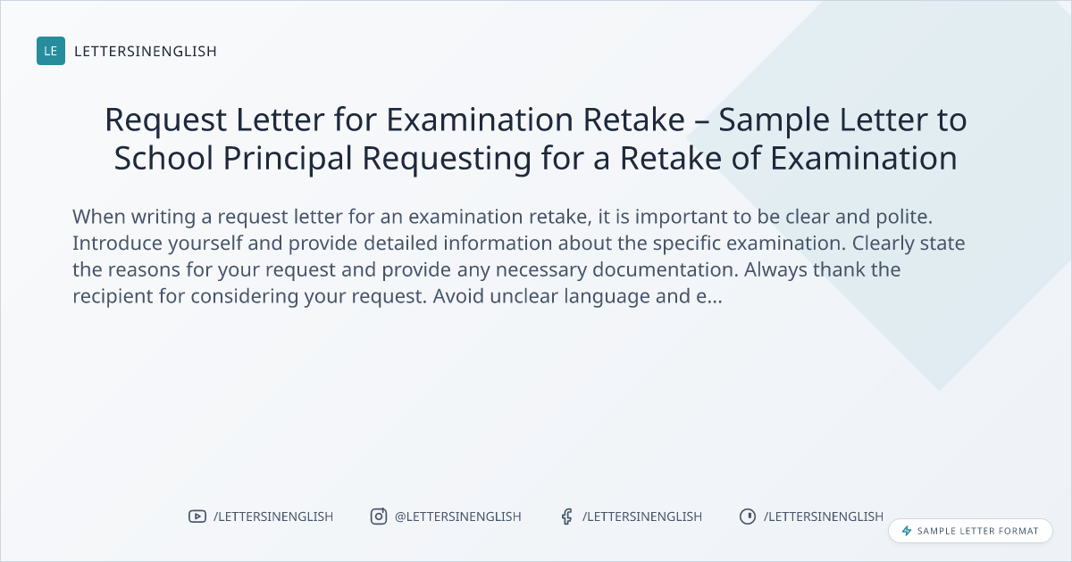 When writing a request letter for an examination retake, it is important to be clear and polite. Introduce yourself and provide detailed information about the specific examination. Clearly state the reasons for your request and provide any necessary documentation. Always thank the recipient for considering your request. Avoid unclear language and ensure all necessary information is included to support your request.