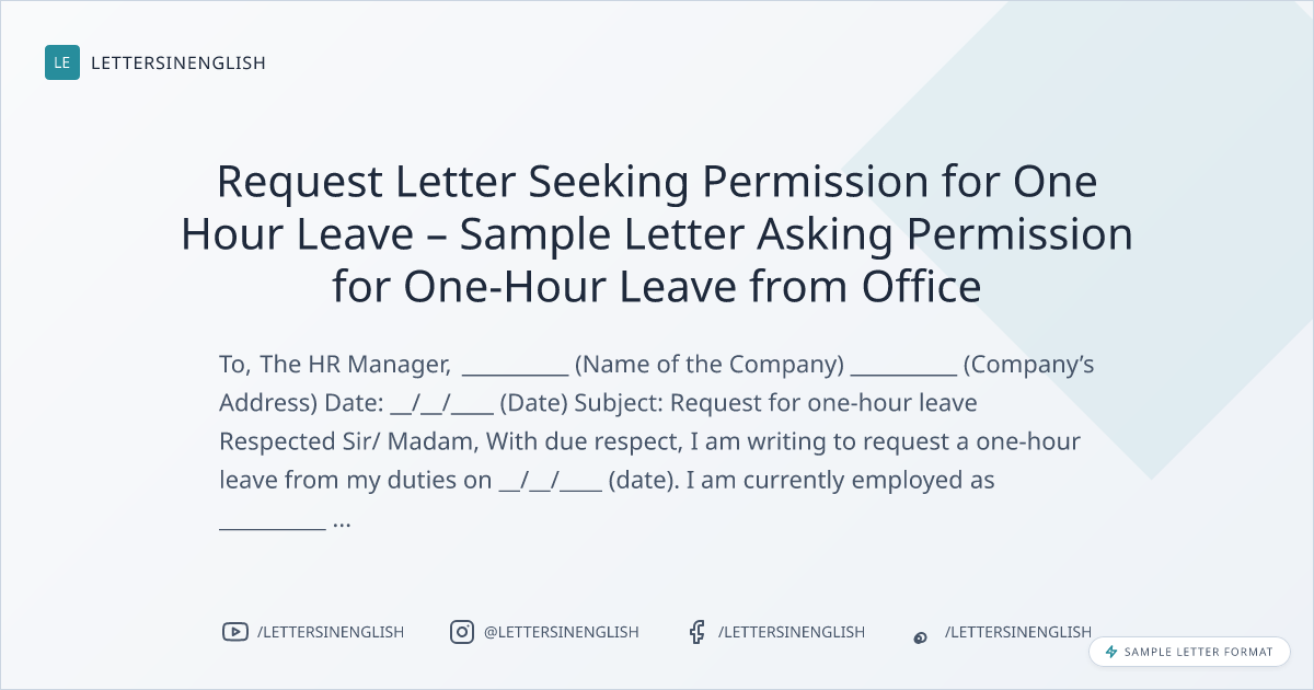 Request Letter Seeking Permission for One Hour Leave – Sample Letter Asking Permission for One-Hour Leave from Office